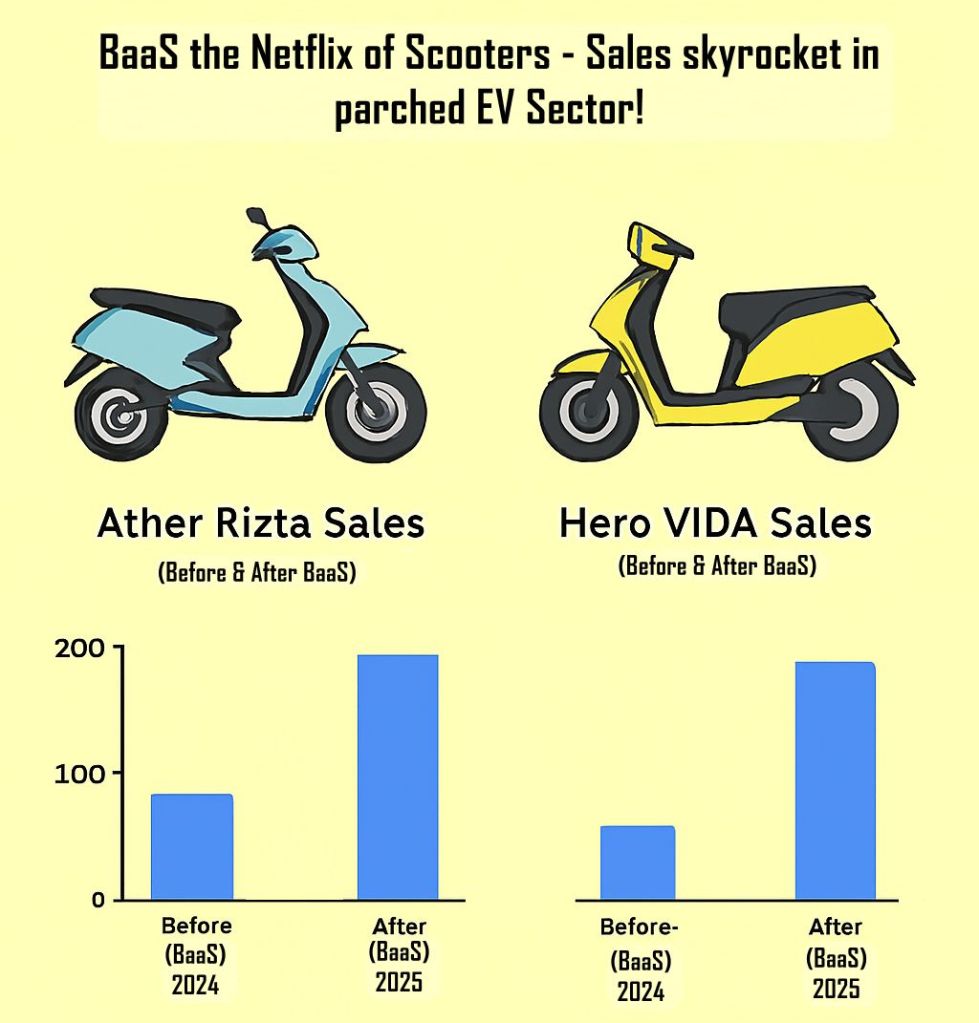 Ather introduced Battery-as-a-Service (BaaS) in India — a scheme that slashed upfront costs, shifted risk, and turned batteries into subscriptions. The eScooter’s weakness became its strength… the expensive Battery now became its strength.