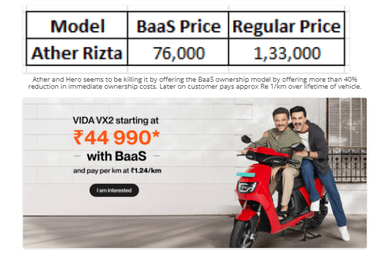 Indians prefer scooter priced around Rs 80,000 … they don’t need touchscreen, maps or music… no subscription either.ATHER & HERO… Before and After implementing BaaS.