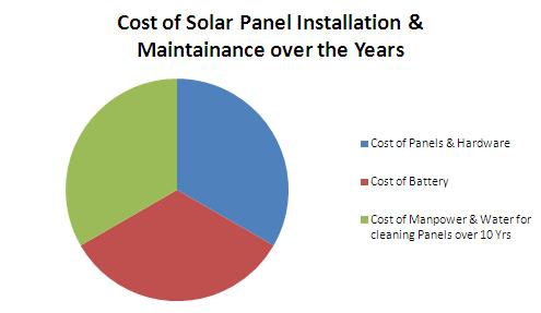 - Cost of manpower & water for maintaining the panels over the years – Permanent cost.