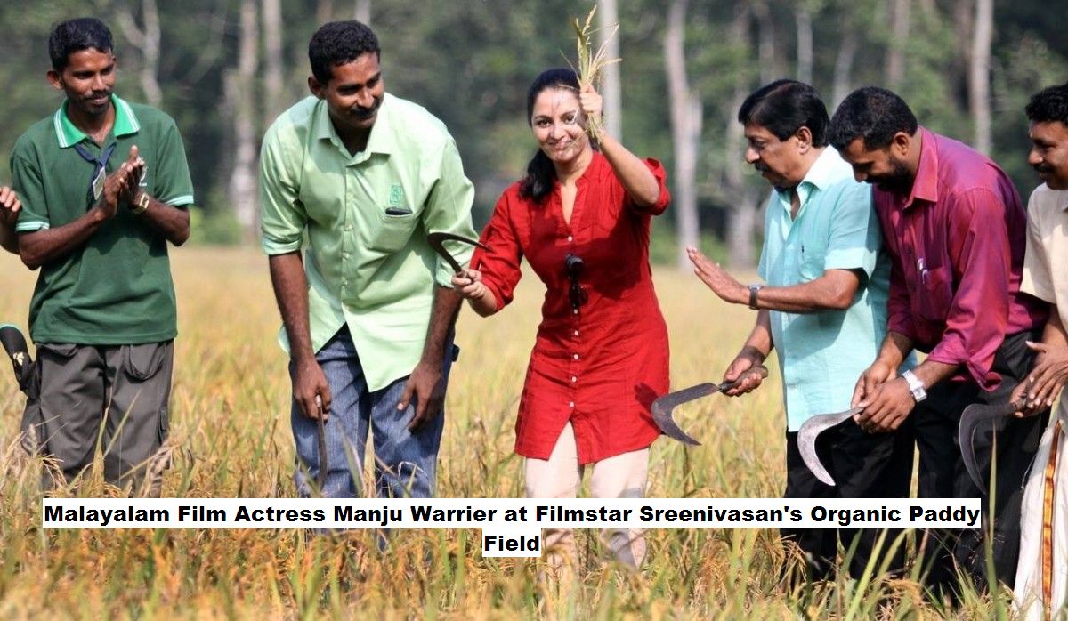 Malayalam Film Actress Manju Warrier Inaugurates Harvest of Sreenivasan’s Organic Paddy Field in Kochi