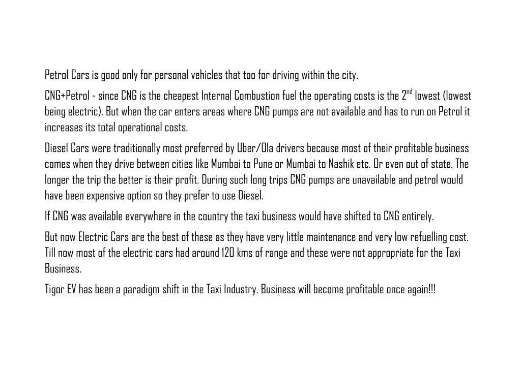 The Alto, WagonR, Swift & 7seater-Eeco are all bought by cab owners for their business – to increase profit … So TigorEV can easily replace all of them.