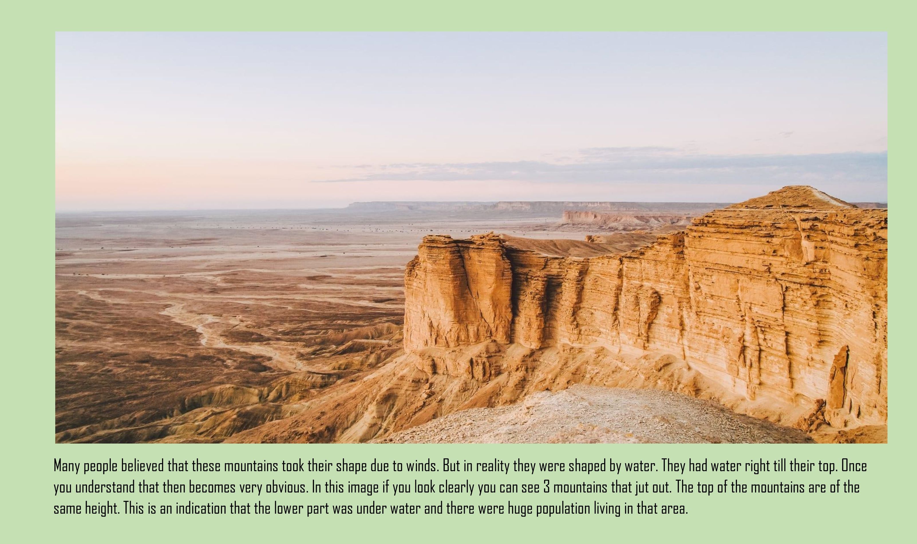 Many people believed that these mountains took their shape due to winds. But in reality they were shaped by water. They had water right till their top. Once you understand that then becomes very obvious. In this image if you look clearly you can see 3 mountains that jut out. The top of the mountains are of the same height. This is an indication that the lower part was under water and there were huge population living in that area.