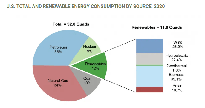 US depends upon BioGas and then Wind Energy much more than other forms of energy: