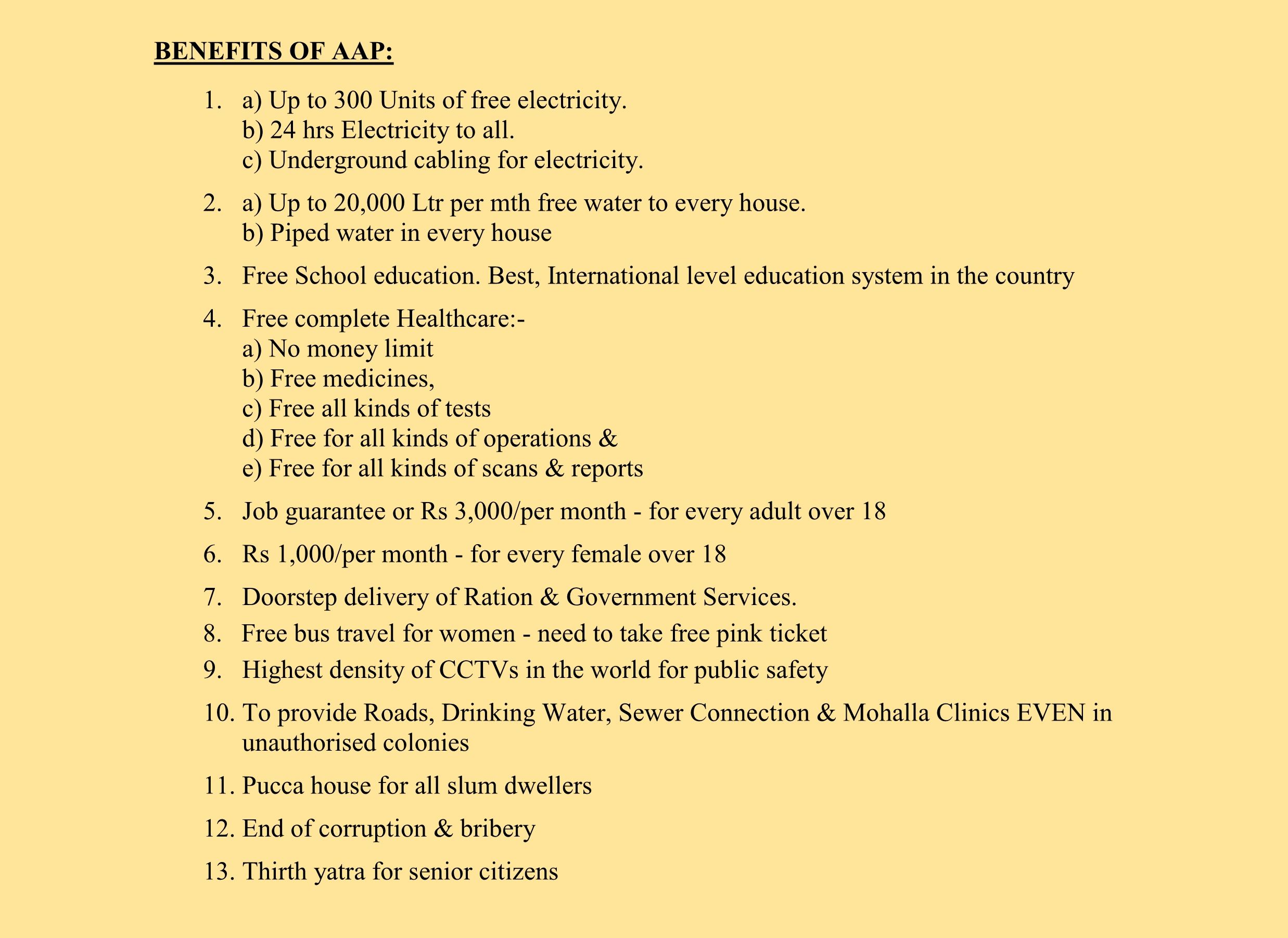 b) Piped water in every house - Free School education. Best, International level education system in the country