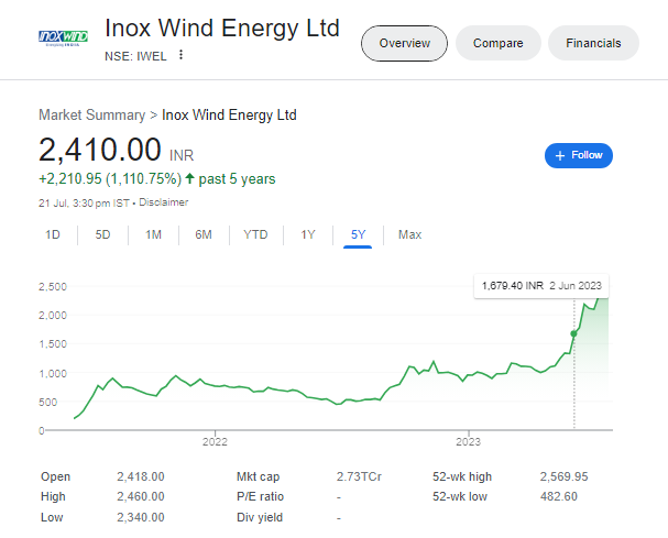 Would you buy 1,000 shares… of Inox Wind Energy at Rs 2,410 or Suzlon Wind Energy at Rs 19?