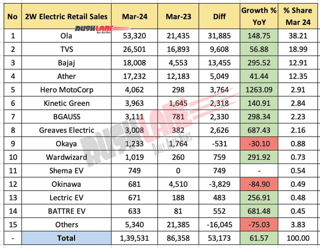 Ola has completely captured the market in India. It has almost 30% market share within a few years. Its next 3 competitors together sold just 61K eScooter… 2 of these companies are supposedly 2Wheeler Giants and well established since multiple decades.