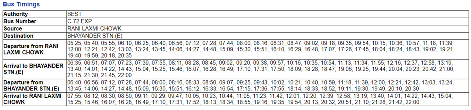 C-72 (A-72) Bus Timings: (between 5:25AM to 10PM)