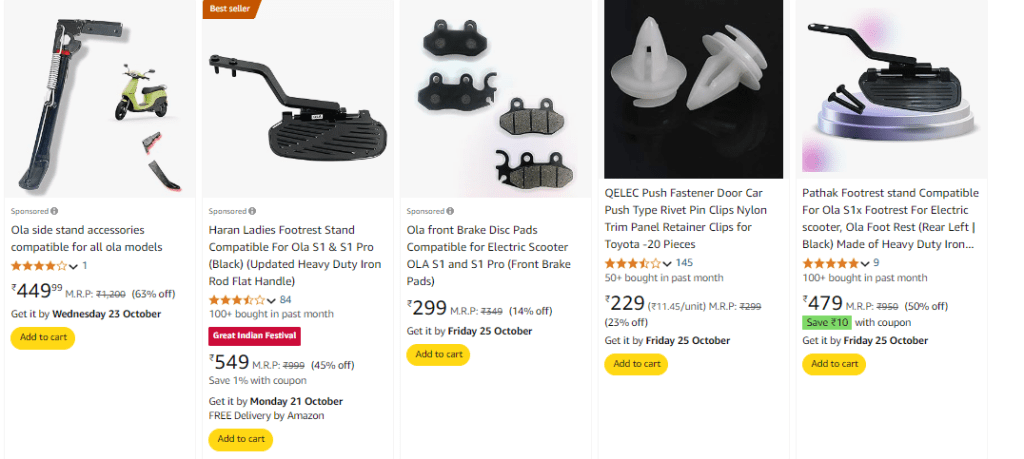 Ola Electric Scooter parts are now available on Amazon India: