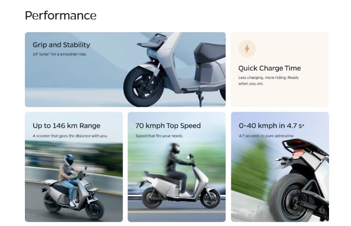 Ola Electric has done something like Tata Motors… placed a vehicle at every price range. Ola Electric has no competition in the Gig scooter Rs 40,000 (US$ 460) & Z category Rs 60,000 (US$ 670). It dominates the mid section with the 140kms Ola Roadster Priced at Rs 75,000 (US$ 862) and is the leader in Long Distance with a range of 501 kms with Roadster X+ priced at Rs 1,55,000 (US$ 1,782).