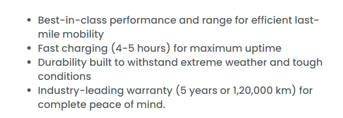 • चलाने की लागत: सस्ती बिजली लागत के कारण सीएनजी, पेट्रोल या डीजल वाहनों की तुलना में काफी कम है।