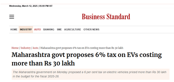 Maharashtra proposes 6% Tax on EVs above 30Lakhs Leave a reply Well done! Maharashtra did what India couldn’t do! Nobody should enter a country through DONKEY ROUTE… Neither Elon Musk or Donald Trump! Pay your Tariffs and enter… We at PlugInCaroo propose to increase it to 10% … to set up CHARGING STATIONS. Share this: Click to share on X (Opens in new window) X Click to share on Facebook (Opens in new window) Facebook Click to email a link to a friend (Opens in new window) Email Click to share on Reddit (Opens in new window) Reddit Click to share on Pinterest (Opens in new window) Pinterest Click to share on WhatsApp (Opens in new window) WhatsApp Click to share on Telegram (Opens in new window) Telegram Like Loading... Related