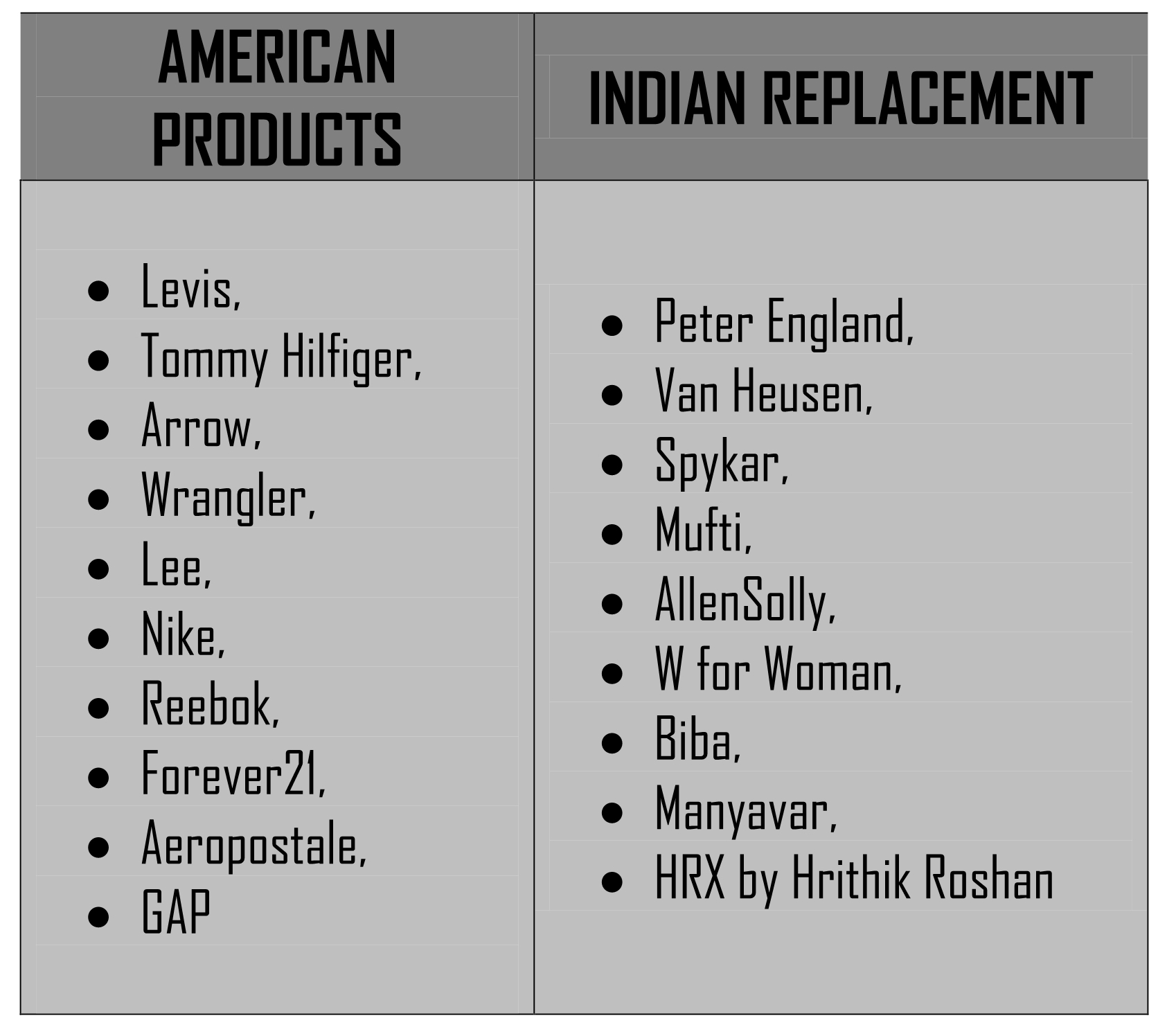 - Boost domestic industries by redirecting consumer demand to Indian brands