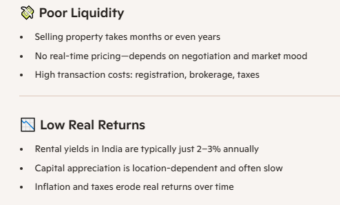 …the actual return on investment often drops below 3–4% annually. Compare that to equity markets, which historically return 10–12% per year, and the disparity becomes painfully clear.