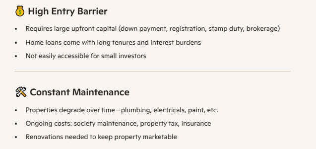 …the actual return on investment often drops below 3–4% annually. Compare that to equity markets, which historically return 10–12% per year, and the disparity becomes painfully clear.