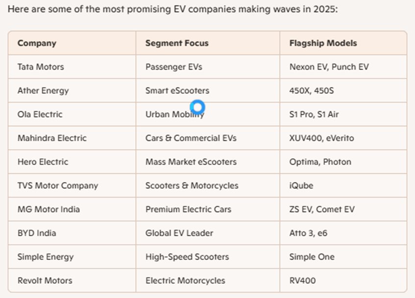 - Startup Culture: India’s vibrant startup ecosystem is fueling innovation in battery tech, charging infrastructure, and vehicle design.