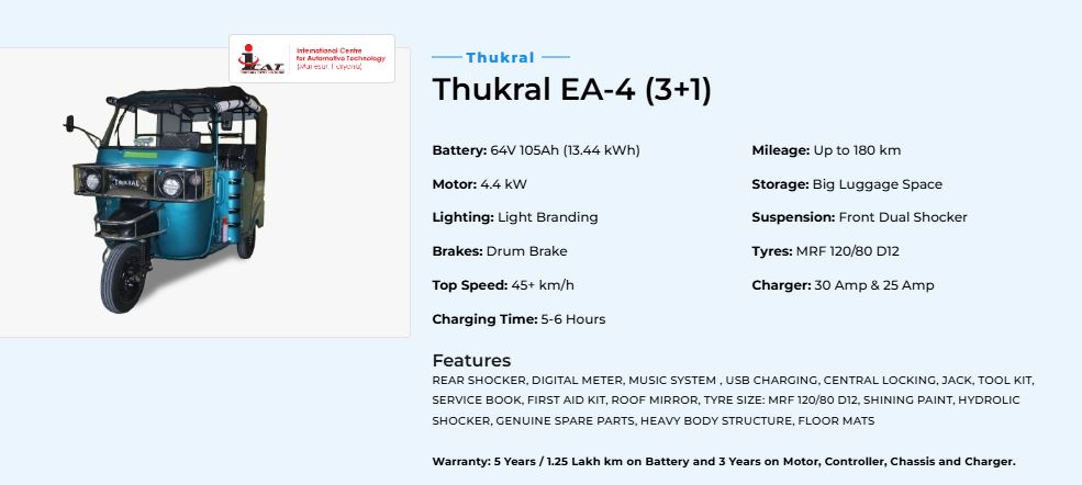 हमने आपके लिए इलेक्ट्रिक ऑटो रिक्शा बनाने वाली टॉप 5 कंपनियों को चुना है। उनमें से ज़्यादातर की कीमत लगभग Rs 3,00,000 है, जिनकी टॉप स्पीड लगभग 50 kmph और रिचार्जिंग टाइम लगभग 5 Hr है। उनकी अच्छी जानकारी देने वाली वेबसाइटें भी हैं, जिनमें पियाजियो की वेबसाइट सबसे अच्छी है। हमने YC इलेक्ट्रिक, सेरा ऑटो, मिनी मेट्रो, ठुकराल ऑटो जैसी कंपनियों को नज़रअंदाज़ किया क्योंकि वे 8-9 सीटर कैपेसिटी वाले ओपन-लॉन्गर-रिक्शा बना रही थीं।