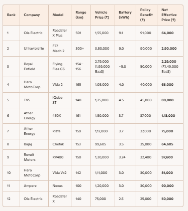 - Example: A 3 kWh e-scooter could get up to ₹30,000 subsidy initially.