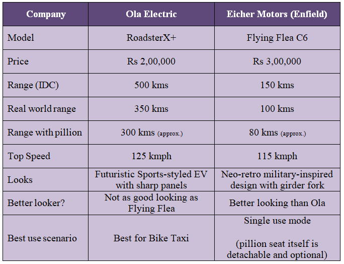 Conclusion: For budget friendly and long distance commuting Ola RoadsterX+ is the clear winner. It is a must-have motorcycle for all those who do Bike-Taxi, Food/Grocery delivery business. For heritage styling and premium feel, Flying Flea C6 stands out.