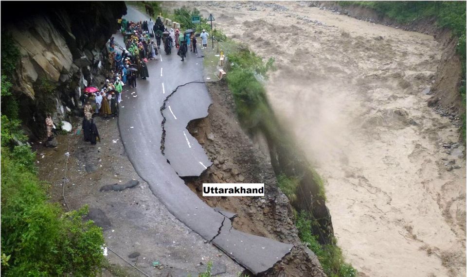 In this handout photograph released by The Indian Army on June 18, 2013, Indian security personnel supervise residents and travellers as they stand on the remains of a flood damaged road alongside the River Alaknanda in Chamoli district in the northern Indian state of Uttarakhand on June 18, 2013. Torrential rains and flash floods washed away homes and roads in north India, leaving at least feared 60 people dead and thousands stranded, as the annual monsoon hit the country earlier than normal, officials said. Authorities called in military helicopters to try to rescue residents and pilgrims cut off by rising rivers and landslides triggered by more than three days of rain in the Himalayan state of Uttarakhand, officials said. —–EDITORS NOTE—- RESTRICTED TO EDITORIAL USE – MANDATORY CREDIT “AFP PHOTO / INDIAN ARMY” – NO MARKETING NO ADVERTISING CAMPAIGNS – DISTRIBUTED AS A SERVICE TO CLIENTS